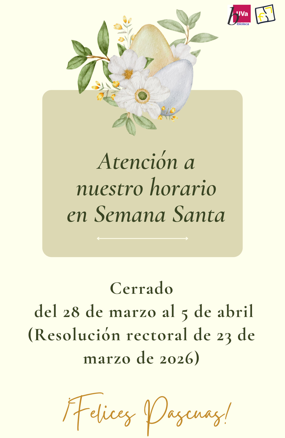 Se acerca una de las épocas más esperadas del año… ¡la Semana Santa! 🌼 Y desde la biblioteca queremos informaros de nuestro horario especial durante estos días.