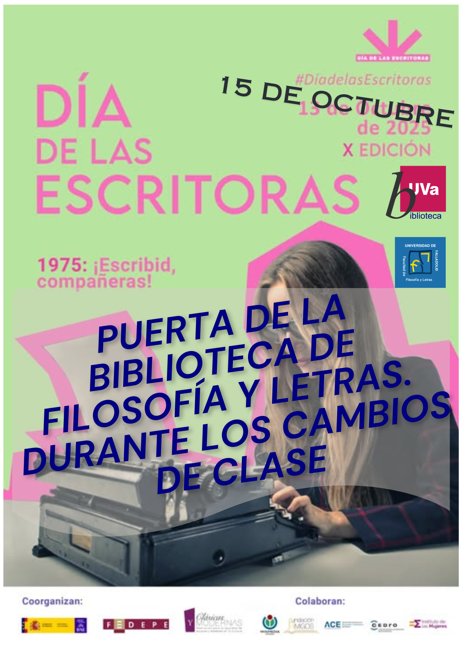 Además, en la Biblioteca de la Facultad de Filosofía y Letras, queremos sumarnos a este homenaje y por ello el miércoles 15 de octubre por la mañana, durante los cambios de hora entre una clase y otra , vamos a realizar lecturas en voz alta en la puerta de la biblioteca / hall de la facultad.
